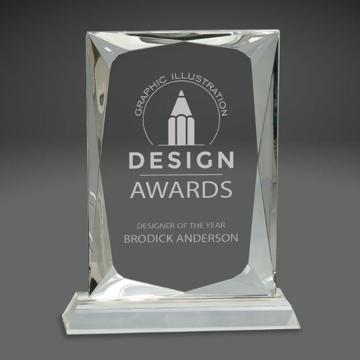 Recognize outstanding achievements with this elegant Diamond Cut Crystal Rectangular Award on Clear Base. Crafted from premium optical crystal, this award features brilliant diamond-cut beveled edges that reflect light beautifully, creating a sophisticated and timeless presentation.